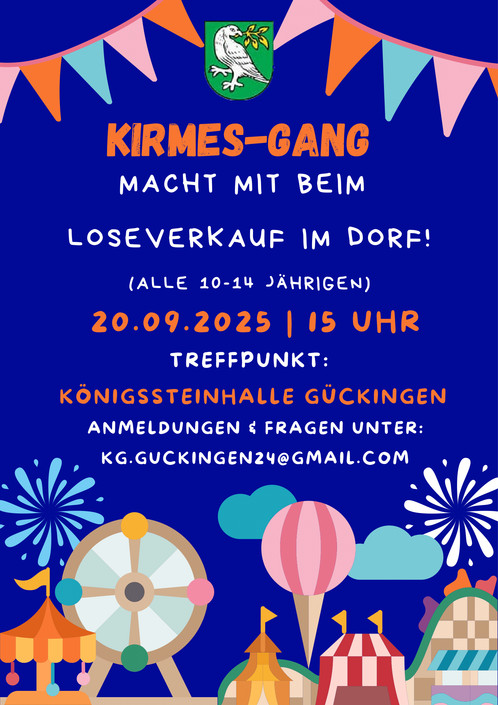 bald ist es soweit – die Gückinger Kirmes rückt näher! Damit auch unsere große Tombola wieder ein voller Erfolg wird, laden wir euch herzlich ein, uns beim Loseverkauf im Dorf zu unterstützen.