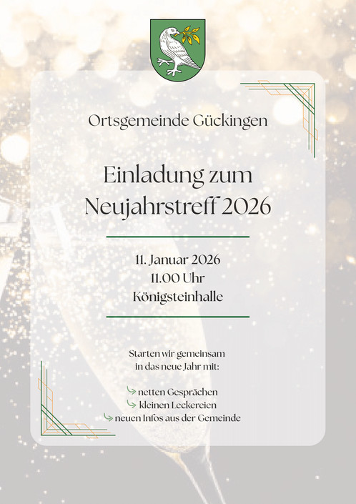 Wie jedes Jahr am 2. Sonntag im Januar laden wir alle Bürger zum Neujahrstreff um 11.00 Uhr in die Königsteinhalle ein.