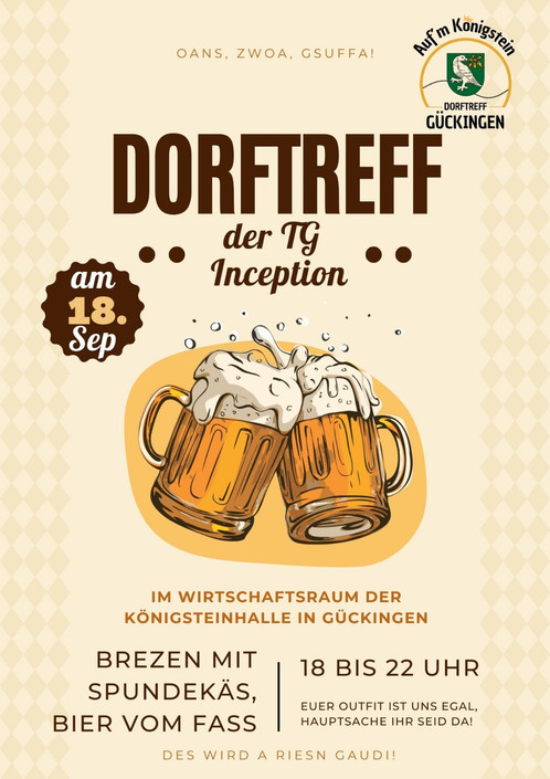 Freut euch auf frisch gezapftes Bier vom Fass, knusprige Brezeln mit Spundekäs und natürlich jede Menge gute Gespräche und geselliges Beisammensein.