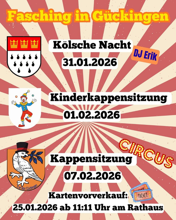 Der Kartenvorverkauf ist am 25.01.2026 um 11.11 Uhr im Rathaus.