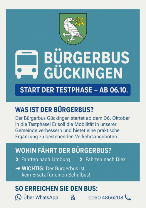 Ab dem 06. Oktober startet in Gückingen die Testphase für den neuen Bürgerbus!